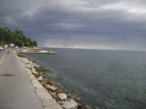 Cycling on the border of Ptuj’s lake side-by-side with a white fishing bird planing above the water. He was looking down, but sometimes would also look at me.